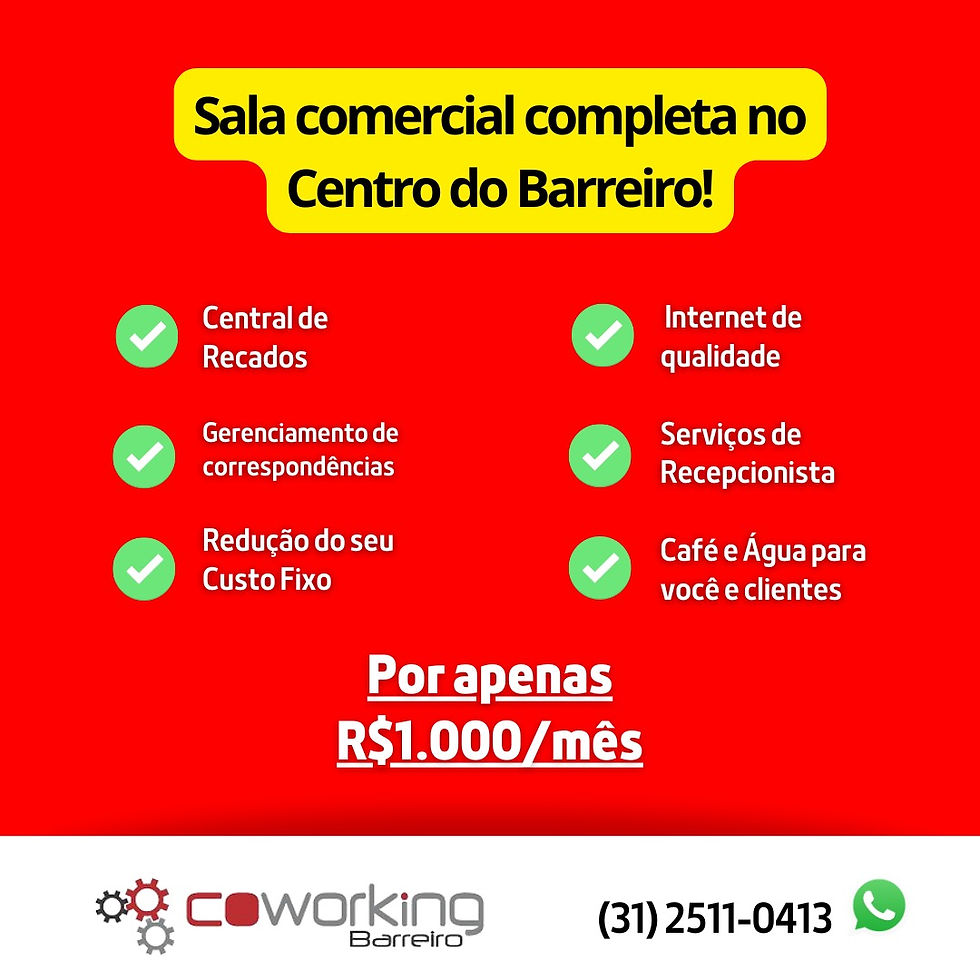 Você não vai perder essa oportunidade de ter o seu tão Sonhado Escritório Mobiliado e Decorado no Centro do Barreiro, por apenas R$1000,00 mensal, com todas as despesas já incluídas!